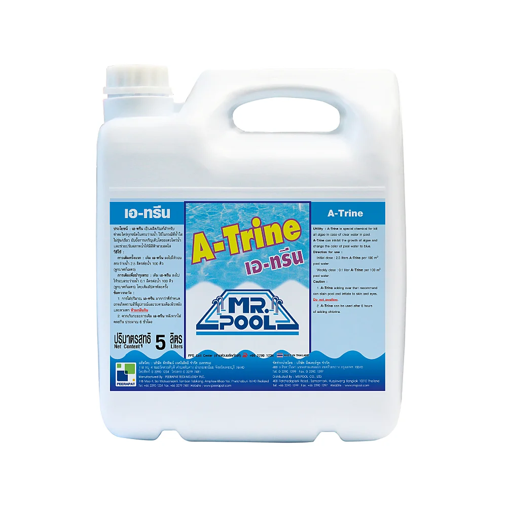 เอ-ทรีน เป็นผลิตภัณฑ์สำหรับฆ่าตะไคร่ทุกชนิดในสระว่ายน้ำ ใช้ในกรณีที่น้ำใส ไม่ขุ่น/ไม่เขียว ยับยั้งการเจริญเติบโตของตะไคร่น้ำ และช่วยปรับสภาพน้ำให้มีสีฟ้าสวย สดใส