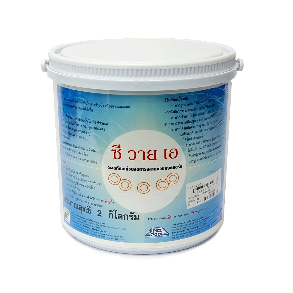 ซี วาย เอ เป็นผลิตภัณฑ์ช่วยลดการสลายตัวของคลอรีนในสระว่ายน้ำ อันเนื่องมาจากแสงแดด ช่วยให้ระดับคลอรีนคงสภาพดียิ่งขึ้น