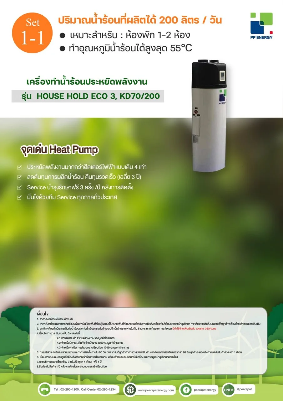 - ปริมาณน้ำร้อนที่ผลิตได้ 200 ลิตร/วัน