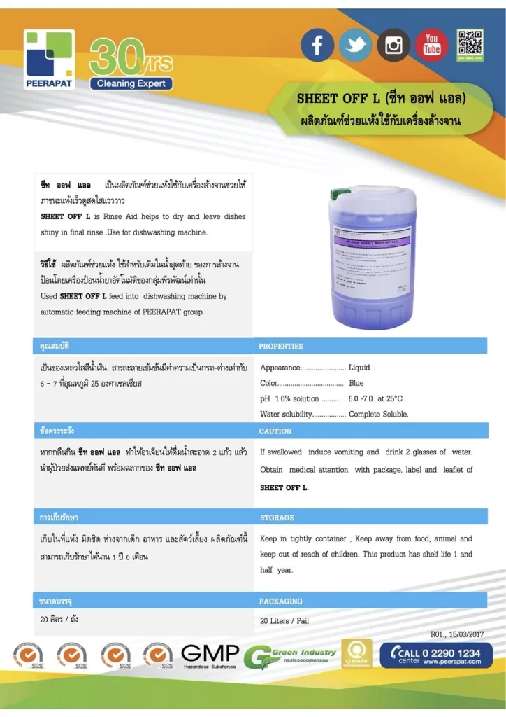 Sheet Off L ผลิตภัณฑ์ช่วยแห้ง (20 lit-pail)